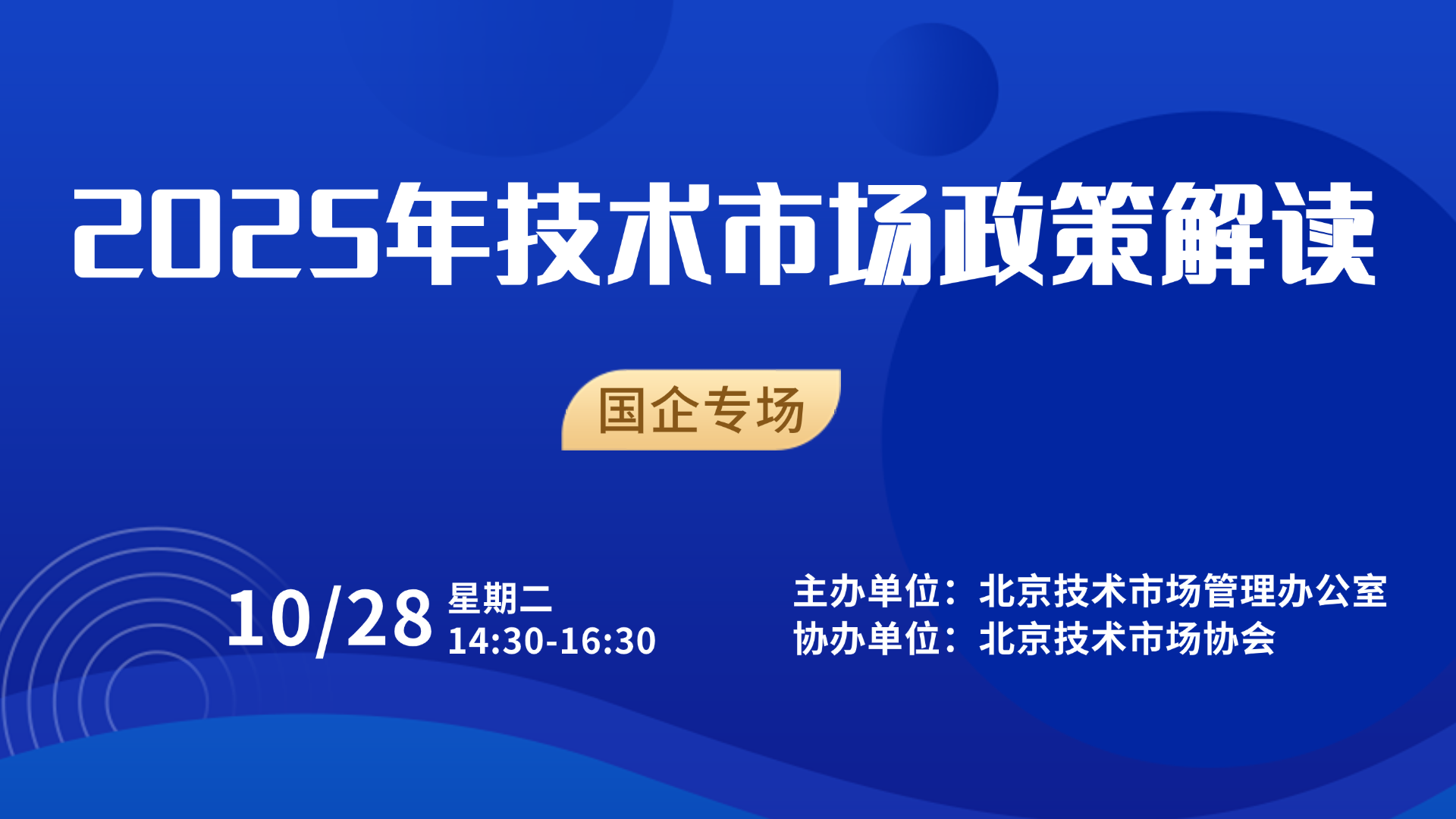 活动简介:为更好的服务创新主体,北京技术市场管理办公室组织开展了系统性、多层次、全覆盖的政策宣讲活动。本期为国企专场,将围绕技术合同认定登记实务及相关税收优惠,北京市自然科学基金联合基金和北京市科学技术奖励政策等相关政策进行解读。