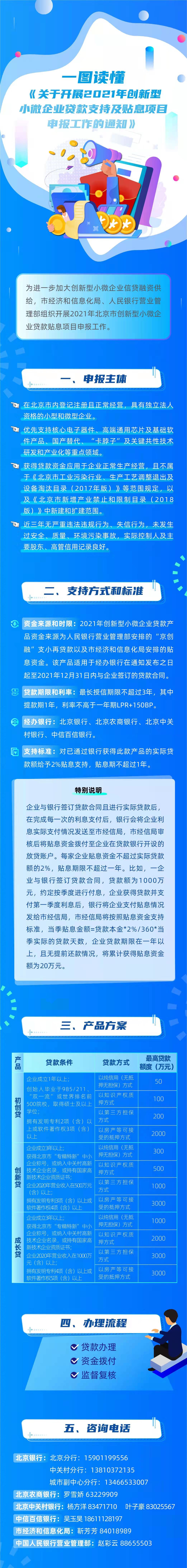 为进一步加大创新型小微企业信贷融资供给,市经济和信息化局、人民银行营业管理部组织开展2021年北京市创新型小微企业贷款贴息项目申报工作,现将有关事项通知如下。