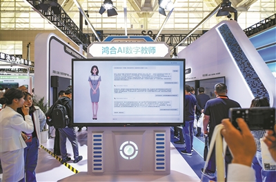 图为第85届中国教育装备展示会上展出的AI数字教师。