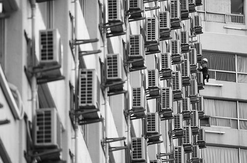 日本东京的一名工人正在清洗空调。图片来源:TORU HANAI