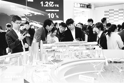 图为观众观看清洁能源开发综合解决方案模型。记者 洪星摄