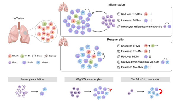 长期以来,对肺纤维化中不同来源巨噬细胞的功能缺乏系统认知,是其靶向治疗的障碍之一。对此,中国科学院分子细胞科学卓越创新中心的研究团队通过遗传谱系示踪等多技术方法,揭示了两类巨噬细胞在肺损伤修复中的动态演变与功能差异,阐明了其调控机制,为开发靶向治疗方案提供了新思路。