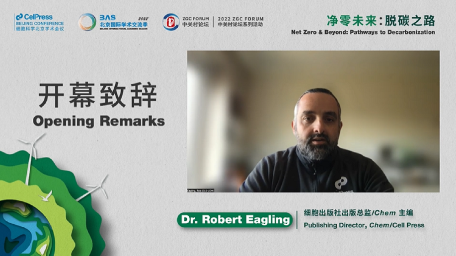 罗伯·雄鹰(Rob Eagling)在致辞中表示,细胞出版社非常荣幸能够继续与北京市科委、中关村管委会深入合作,携手召开第四届年度重磅学术会议。今年关注的是当下全球所面临的碳中和议题。大会集合了来自世界各地的专家,分享已知,探讨未知,携手合作。各方希望通过此次会议,使“国际合作大力推动科学发展”的理念得到进一步深入贯彻。