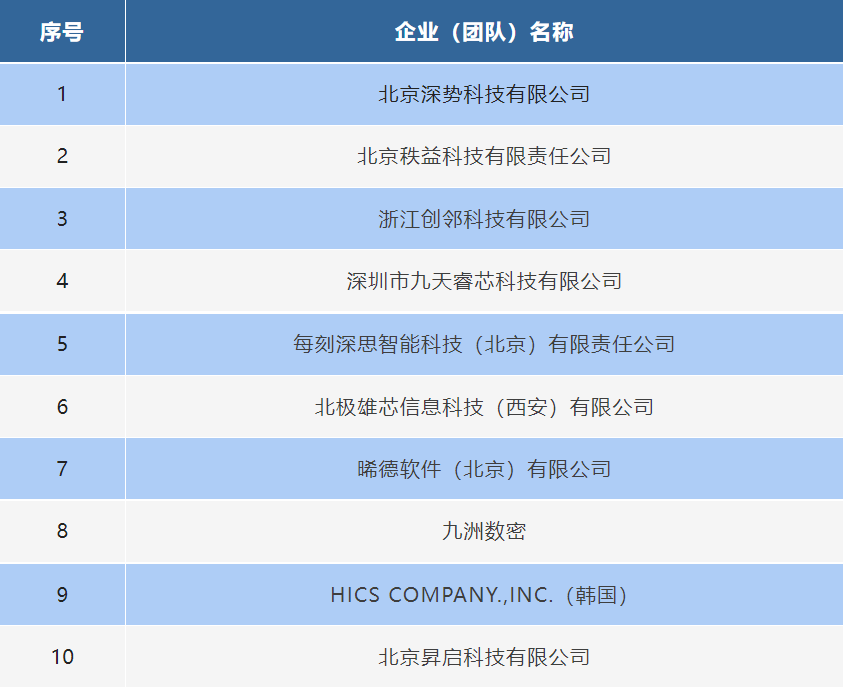 国际赛道新一代信息技术领域TOP10榜单
