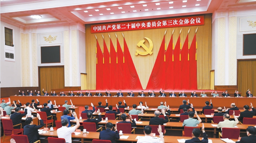 全会号召,全党全军全国各族人民要更加紧密地团结在以习近平同志为核心的党中央周围,高举改革开放旗帜,凝心聚力、奋发进取,为全面建成社会主义现代化强国、实现第二个百年奋斗目标,以中国式现代化全面推进中华民族伟大复兴而努力奋斗!