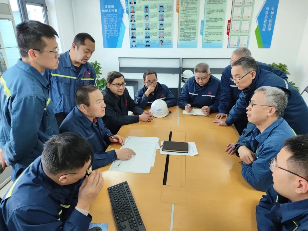 申泽岳(右二)和团队成员讨论焊工工艺。