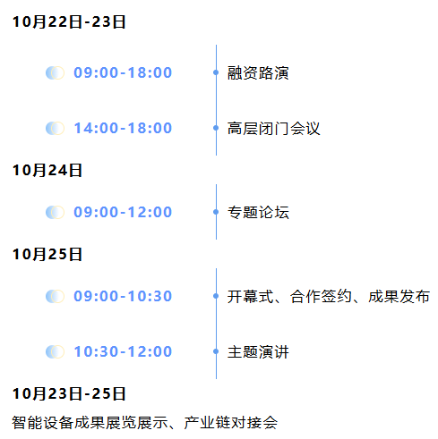 包括融资路演、智能设备成果展览展示、产业链对接会等