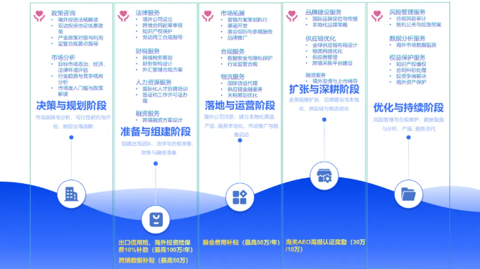 政策福利直达:专属团队解读出海政策,协助完成福利申请、资质办理,帮您吃透政策红利、少走流程弯路;