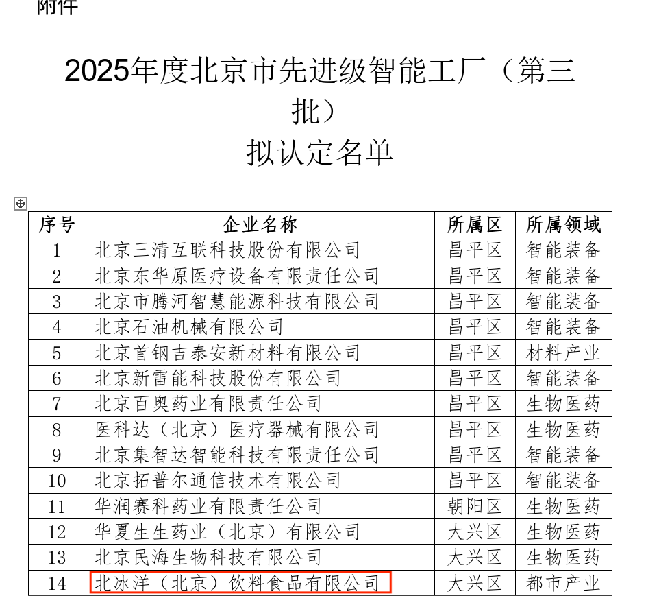此次通过先进级认定,不仅是对企业持续深耕智能制造的高度肯定,也展现出其扎根北京产业生态、扎实推进数字化转型战略的显著成果。展望未来,北冰洋公司将以此为契机,进一步深化智能工厂建设,融合工业互联网、大数据等新一代信息技术,持续挖掘数据价值、优化运营成本、增强核心竞争力,力争在更高质量的智能制造发展中实现新突破。