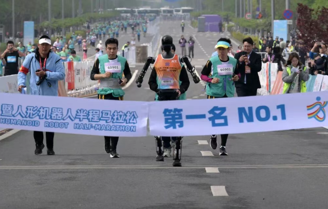 面对人形机器人行业快速发展,北京通过“搭平台、供场景”,引导行业健康发展。2025年,在京举行的全球首届机器人半程马拉松赛“火爆出圈”,世界机器人大会成功举办,展现了北京机器人行业发展的迅猛势头。这是在全球首届机器人半程马拉松赛上,由北京人形机器人创新中心研发的“天工Ultra”冲向终点(2025年4月19日摄)。