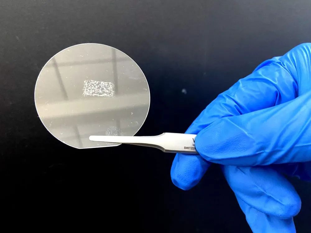 图为研究人员用镊子夹起的一片熔融石英,上面条状物为TBN。新华社记者 魏梦佳 摄