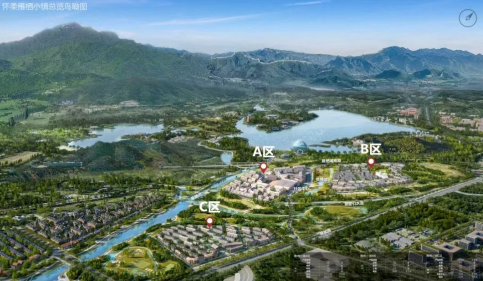 雁栖小镇位于雁栖湖畔、怀柔科学城中心区,由A、B、C三个区组成,规划建设高端住宅、国际医疗康养中心、科学家邻里中心、国际托幼中心、精品酒店和社区中心等,重点服务于国内外顶尖科学家、企业家、艺术家和创新创业群体。项目由怀柔科学城公司作为实施主体开发建设,阿那亚团队负责整体运营,包括商业资源导入、配套设施运营管理、物业服务等,全面提升社区品质,创新美好生活社区实践。