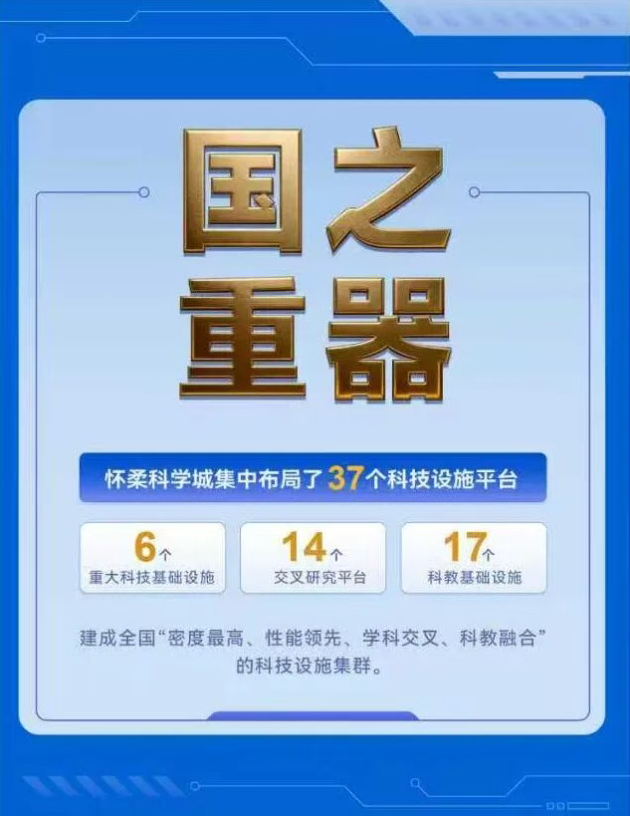 大科学装置是推动科技创新、建设科技强国的利器。当前,怀柔科学城已成为全球重大科技基础设施最密集、国家战略科技力量体系最完善的区域之一。“十三五”29个科学设施全部进入运行状态,17个面向全球累计开放机时164万小时,HOPE装置等“十四五”项目加快建设,围绕重点科学方向储备“十五五”项目30余个。原始创新和关键核心技术持续涌现,已产出重大科技成果439项,突破关键核心技术72项,形成8类成果转化“怀柔模式”。