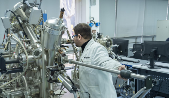 科研人员在表面国际科学实验室开展实验