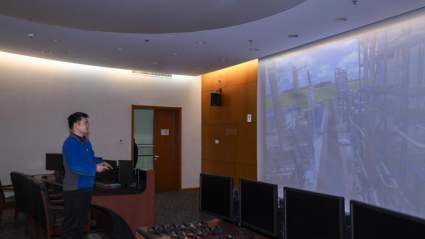 工作人员演示百万吨煤制油动态仿真系统