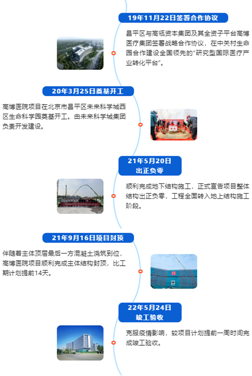 从项目开工建设到竣工验收,在市区相关部门的大力支持和参建各方的积极努力下,高博医院项目一路提质增速,顺利完成了各项重要节点的工作任务,用实际行动诠释了“昌平速度”“未来科学城速度”。