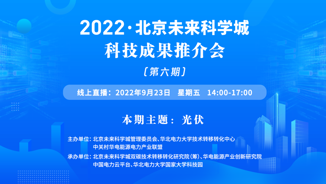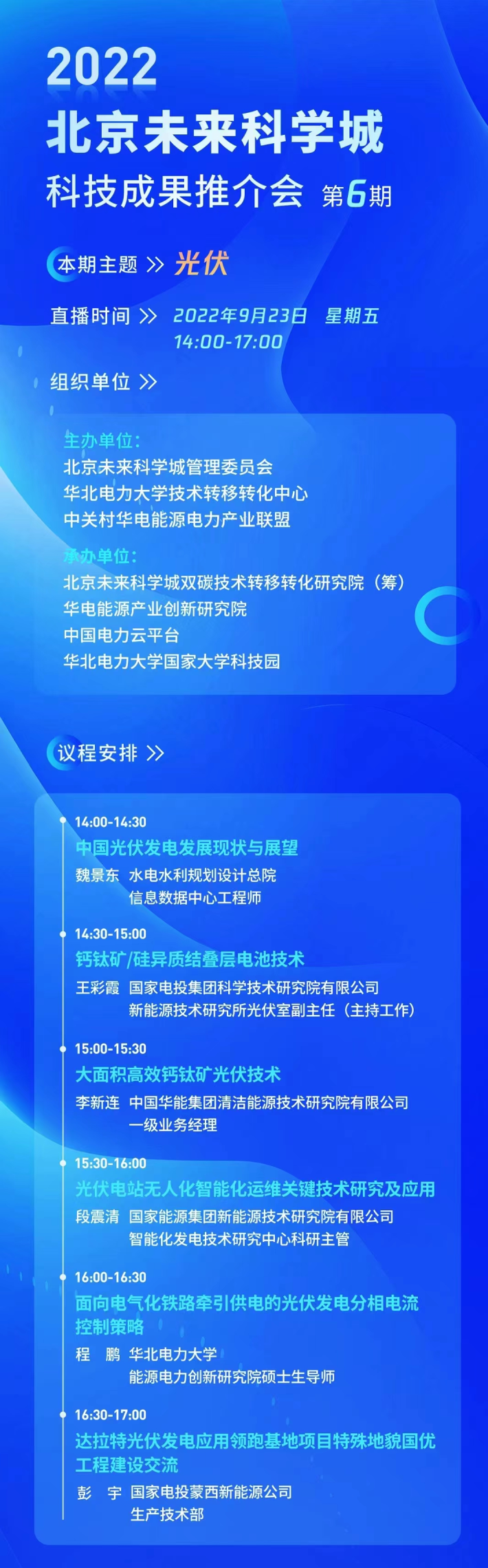 9月23日,本周五下午,2022年北京未来科学城科技成果推介会(第六期)线上直播等你来,本期主题聚焦光伏。