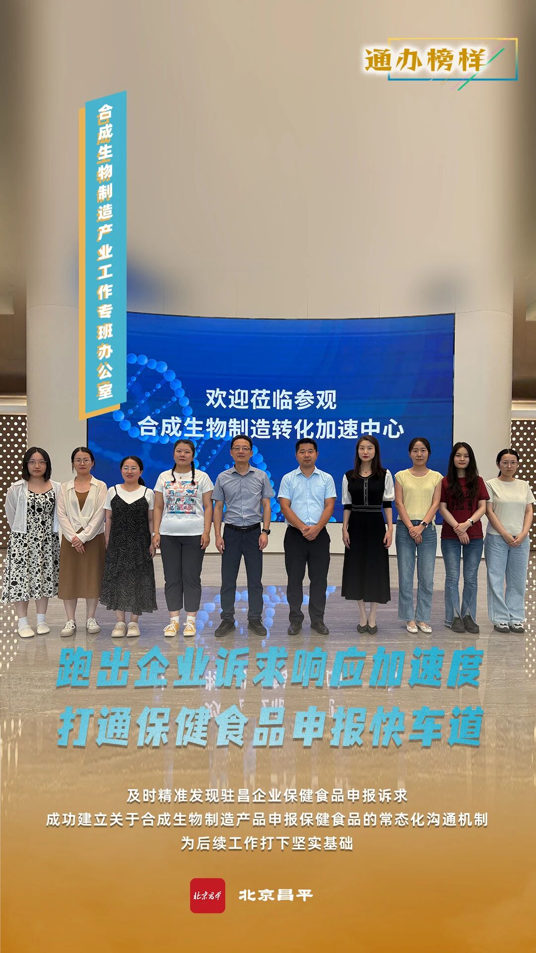 合成生物制造产业工作专班办公室及时精准发现驻昌企业保健食品申报诉求,积极协调联动市、区两级市场监管局,并与国家市场监管总局食品审评中心建立有效沟通渠道,根据总局与国家卫健委建立的“技术联动、专家联审”机制,建议企业合并申报保健食品新原料、保健食品及保健食品新功能,成功破解行业申报难题。此次三级联动高效协同服务,成功建立关于合成生物制造产品申报保健食品的常态化沟通机制,为后续我区合成生物制造产品申报保健食品打下坚实基础。