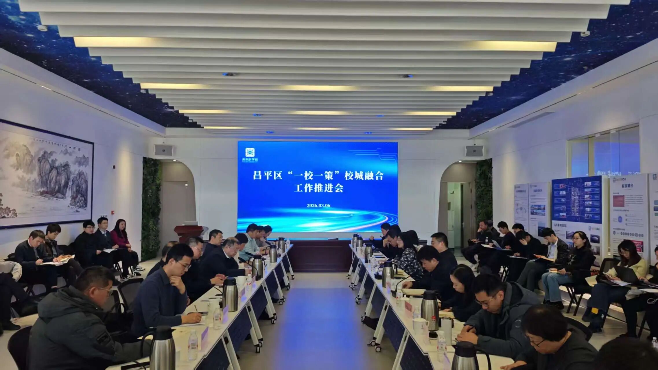 3月6日,昌平区“一校一策”校城融合工作推进会在沙河高教园区召开。会议由区委常委、副区长柳强主持,未来科学城管委会副主任、副区长赵仕伟,中国石油大学(北京)党委常委、副校长黄磊,中央财经大学党委副书记、副校长朱凌云,华北电力大学党委常委、副校长檀勤良,北京农学院党委常委、副院长王永浩,中国矿业大学(北京)校长助理乔红兵,北京航空航天大学、北京师范大学、北京邮电大学、外交学院、北京信息科技大学、北京科技大学、中国政法大学、北京化工大学以及区相关职能部门负责人出席,共商校城融合发展新路径,共绘校地协同新篇章。