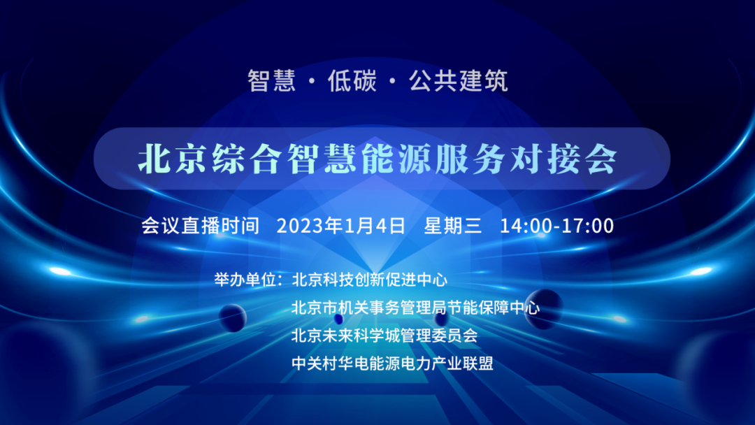 为促进低碳新技术、新产品、新服务在北京城市公共建筑、园区、数据中心等场景应用,提高综合能源使用效率和新能源利用水平,提升能源智慧管控水平,强化科技对北京市建筑领域节能降碳的支撑作用,北京科技创新促进中心联合北京市机关事务管理局节能保障中心、北京未来科学城管理委员会、中关村华电能源电力产业联盟于2023年1月4日以线上方式举办“北京综合智慧能源服务对接会”,以“综合智慧能源助力低碳城市建设”为主题,促进低碳新技术新成果新...