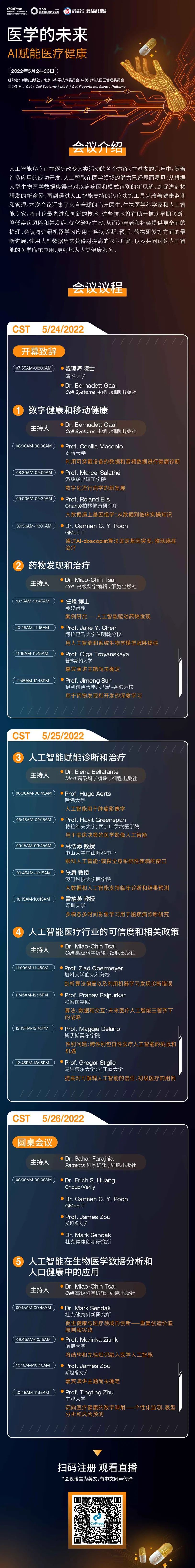 北京市科学技术委员会、中关村科技园区管理委员会与Cell Press细胞科学出版社共同携手, 于2022年5月24日至5月26日举办「医学的未来:AI赋能医疗健康」高级峰会。
