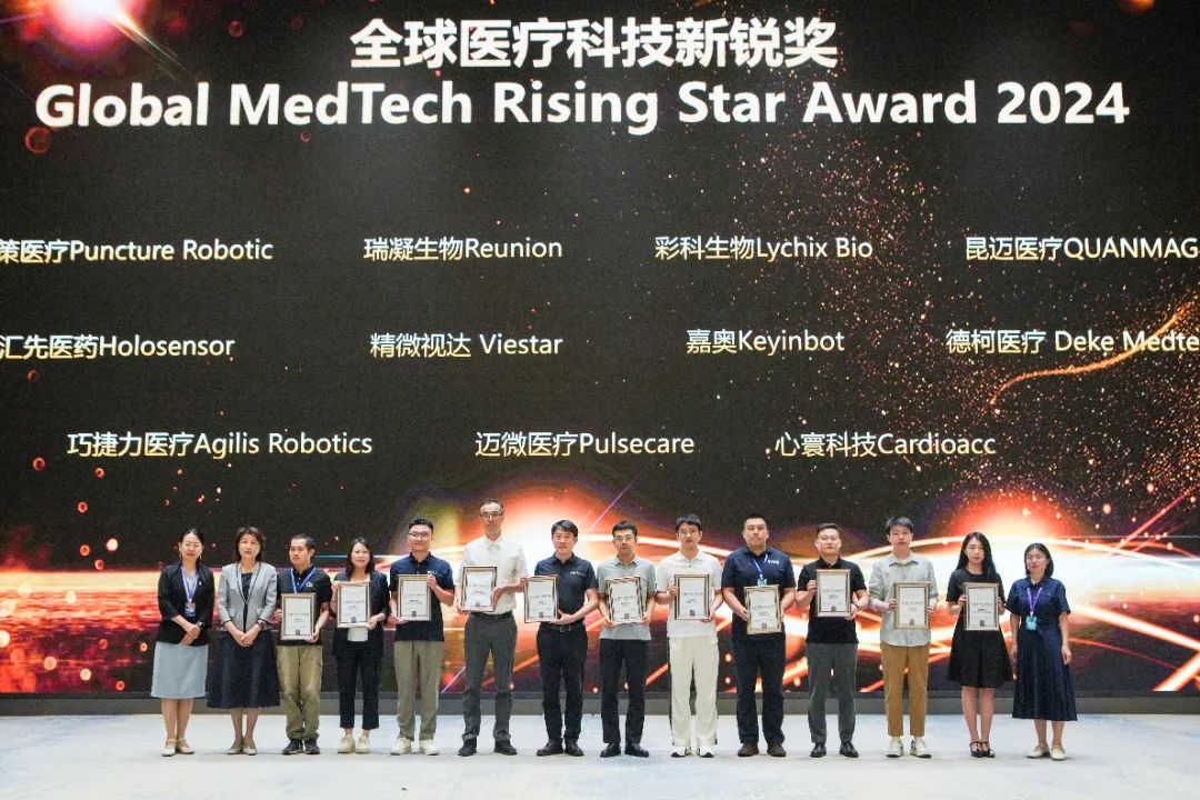 在中关村联新生物医药产业联盟会员授牌仪式和2024全球医疗科技大奖颁奖典礼上,颁发了全球医疗科技新锐奖(Global MedTech Rising Star Award)、全球医疗技术创新奖(Global Medical Technology Innovation Award)和全球创新医疗器械奖(Global Innovation Medical Device Award)三项奖项。其中,磅策医疗、心寰科技、瑞凝生物等11家企业获得了全球医疗科技新锐奖,智愈医疗、歌锐科技、永仁心医疗等14家企业获得了全球医疗技术创新奖,帕母医疗、品驰医疗、罗森博特等6家企业获得了全球创新医疗器械奖。