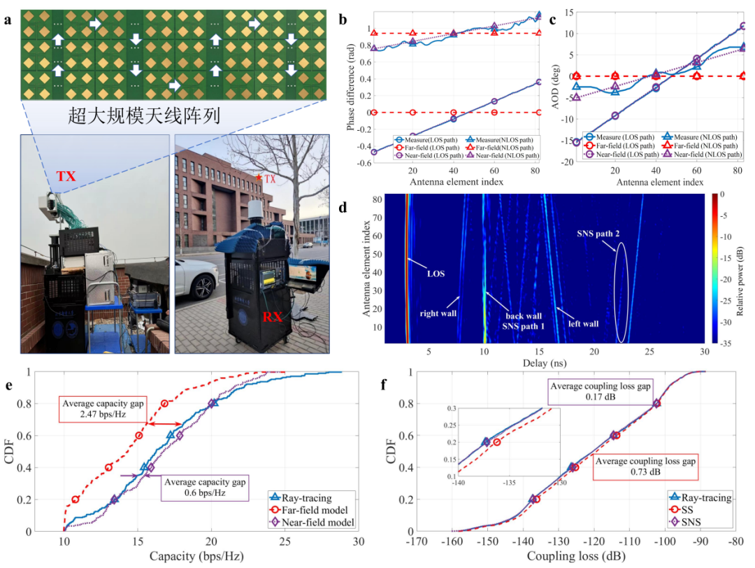 6-24GHz(FR3)频段已被3GPP与国际电信联盟定为6G主频段,搭配超大规模MIMO可实现高速率与广覆盖,开展该频段信道模型研究对推进6G标准形成和技术研发至关重要。张建华教授团队研制了1536阵元的超大规模MIMO信道测量平台,发现传统5G信道模型的远场、空间平稳假设不再适用。团队据此提出双维度参数扩展机制,拓展阵列维度为阵元级动态变量,建立物理特性与标准接口的映射,兼容原有系统仿真。实测显示,新信道模型通过引入空间非平稳特性,比传统空间平稳模型更精准复现了真实场景多径能量衰减规律,信号强度与基线模型误差小于0.17dB。