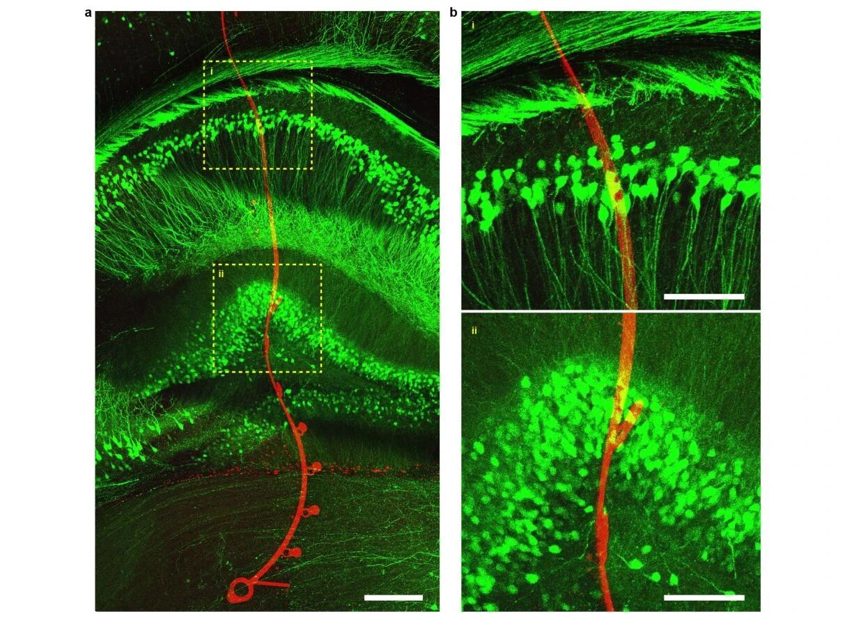 可拉伸柔性电极长期植入后与脑组织生物相容性界面