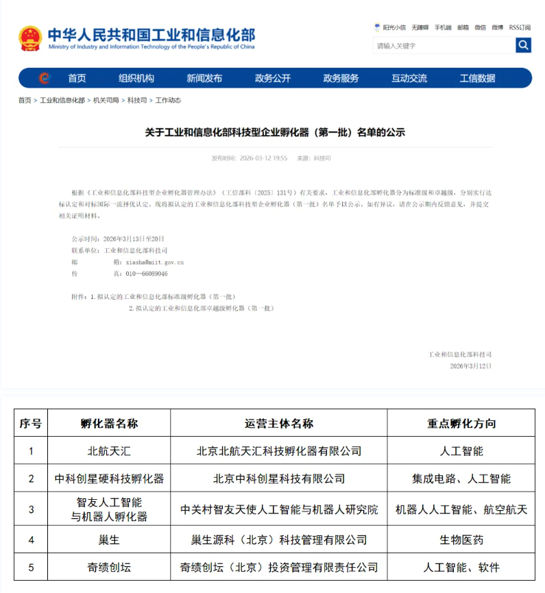进入卓越级孵化器公示名单