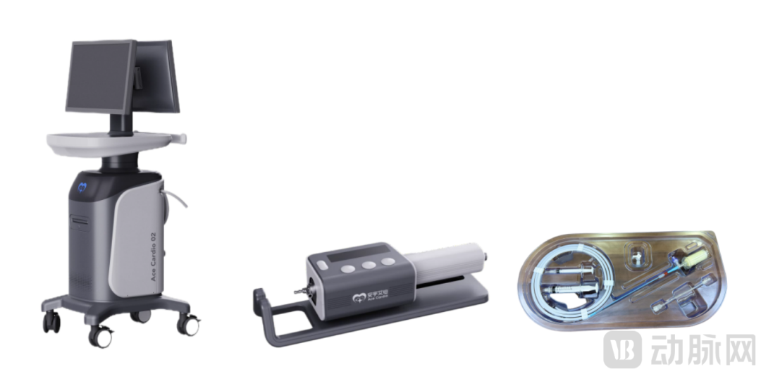 设备-手术室台车(左)PIU-床旁控制单元(中)导管-快速交换导管/OTW导管(右)