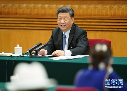 5月22日,中共中央总书记、国家主席、中央军委主席习近平参加十三届全国人大三次会议内蒙古代表团的审议(新华社记者 谢环驰摄)
