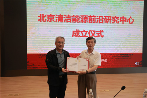 在正式报告开始之前,方忠所长首先宣布北京清洁能源前沿研究中心成立并致辞,指出随着物理所怀柔园区“一装置两平台”建设工作逐步由建设阶段转入运行阶段,并随着怀柔研究部课题组的设立和入驻人员的确定,决定依托院市共建的清洁能源材料测试、诊断与研发平台成立“北京清洁能源前沿研究中心”,牵头规划与组织怀柔研究部清洁能源前沿研究方向的科研布局、人才队伍、平台建设及合作交流,并聘请陈立泉院士担任中心名誉主任,李泓研究员担任中心主任。方忠所长随后为中心名誉主任陈立泉院士、中心主任李泓研究员颁发了聘书。