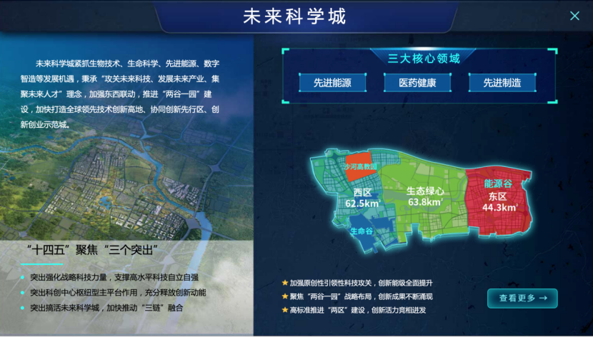 透过“基础设施”栏目,可以感受到“未来科学城”庞大的创新体量,“两谷一园”再加其他功能组团,各类创新要素和产业基础丰厚扎实。