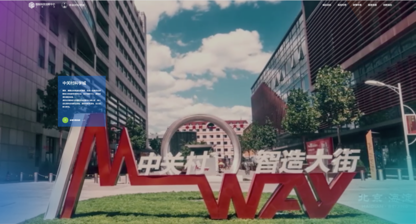 中关村科学城主页,页面以清新白色打底,科创蓝与生命绿攀织如双螺旋,映照区域“创新生态雨林”系统,一抹跳脱的紫色营造生动感,呈现充满活力与创造力的国际化创新生态。