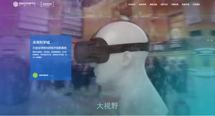 科学城建设秉承“攻关未来科技、发展未来产业、集聚未来人才”理念,进入城区主页,首屏视觉呈现便传递出满满的“未来”科技感。