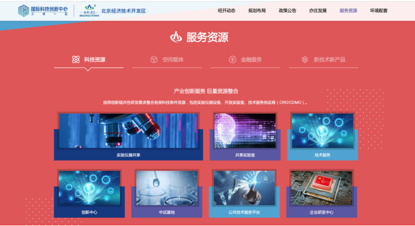 经开区着力建设集成电路设计和制造高地,建成生物药研发生产平台、支持新能源智能网联汽车集群发展。城区主页的“服务资源”栏目,相应地提供一站式配套服务,点击图片可以进入不同的资源服务平台。
