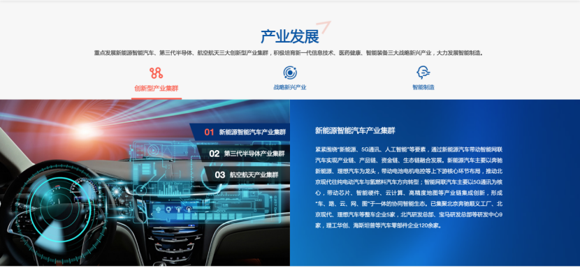 北京创新产业集群示范区(顺义),航天科技依然是顺义区传统创新高地,此外,顺义区还聚焦新材料、智能制造、第三代半导体产业等创新领域。透过城区主页的“产业发展”栏目,可以详细了解顺义区最新的产业发展情况。