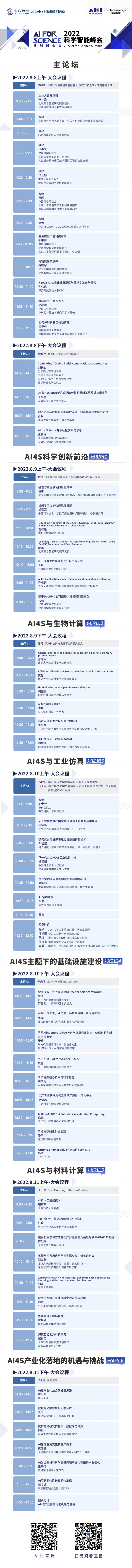 科技创新是人类进步的动力源泉。如今,科学发展正迎来历史性机遇:人工智能与传统科研的结合带来了巨大潜能,AI for Science 全新范式成为当前的重要趋势。然而不可否认的是,AI for Science仍然有很大的突破空间。AI for Science如何更高效地用AI助力科研,在生物计算、材料计算、工业仿真等领域有着怎样的具体问题和突破,需要什么样的基础设施,又将怎样与产业落地结合?通过为期4天的讨论,峰会将针对这些热点话题,为全球有志于践行AI for Science的嘉宾与观众一一进行解答。