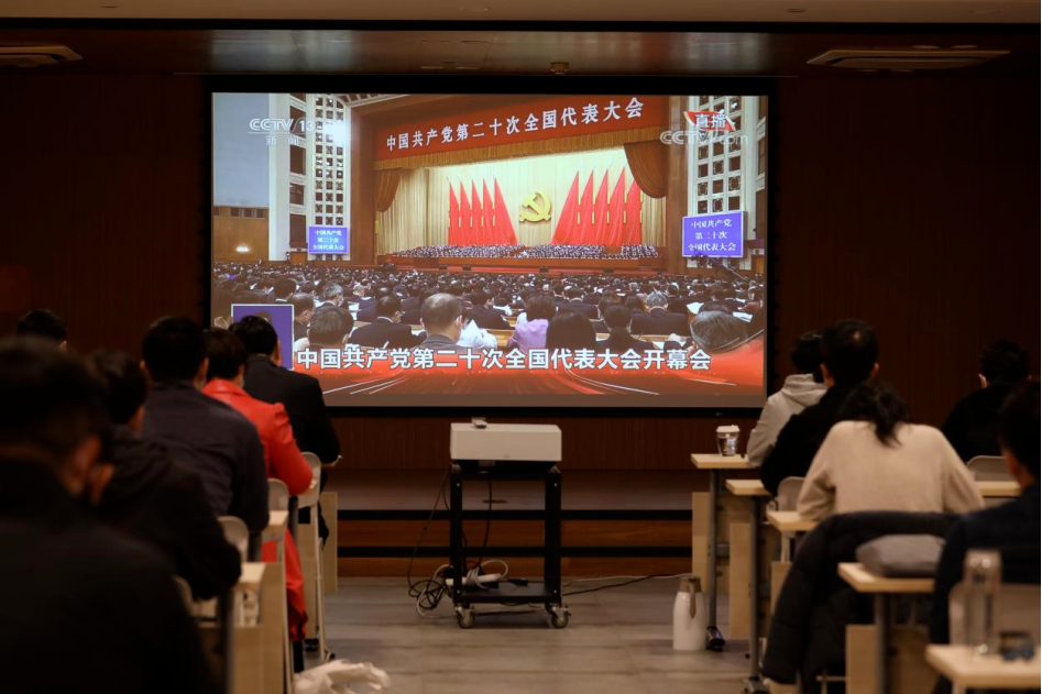 中关村软件园公司第一时间组织党员干部观看党的二十大开幕会盛况,认真学习大会报告。大家开展热烈讨论,纷纷表示要立足本职工作,以更加自信昂扬的精神风貌和奋进姿态投身于科技创新的各项工作任务中去。