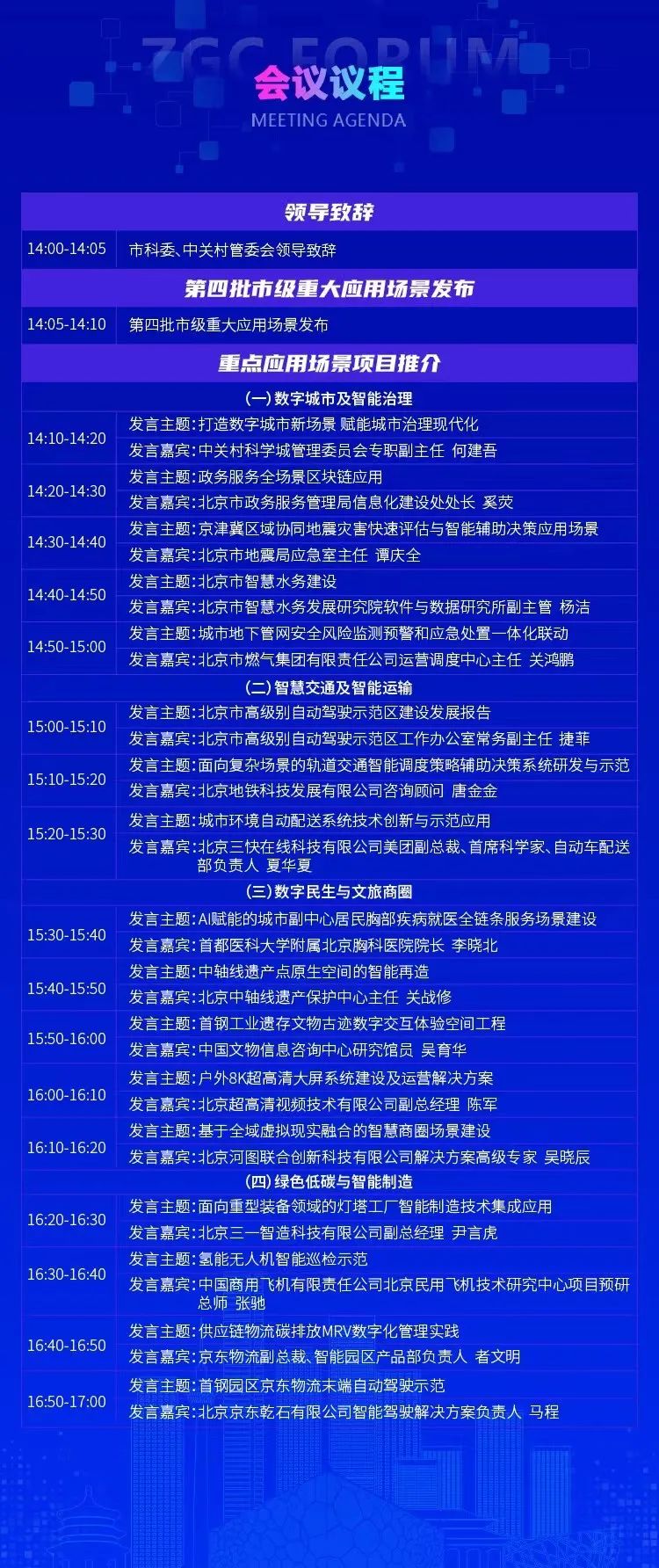 围绕5G、人工智能、区块链、大数据、云计算等前沿技术应用,以首都交通、水务、应急、政务等城市治理及民生改善痛点难点为牵引,面向城市副中心、三城一区、新首钢等重点区域,将邀请有关政府部门、国有企业、领军企业等推介17项典型应用场景项目。