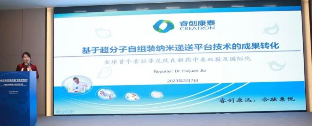 睿创康泰——基于超分子自组装纳米递送平台技术的成果转化—索拉非尼改良新药中美双报的产业化及国际化项目:用一种全新的思路和技术替代现有技术,以一种高效、安全、低成本的方法解决递送领域多项技术难题。