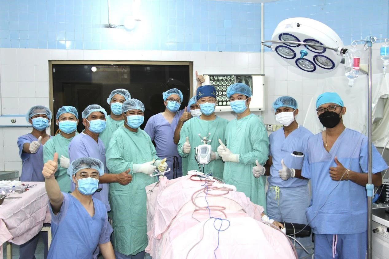 ▲中柬医疗团队手术成功后合影