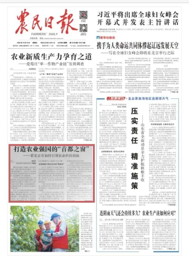 10月10日,农民日报刊登《打造农业强国的“首都之窗”——看北京市如何引领农业科技创新》。全文如下——