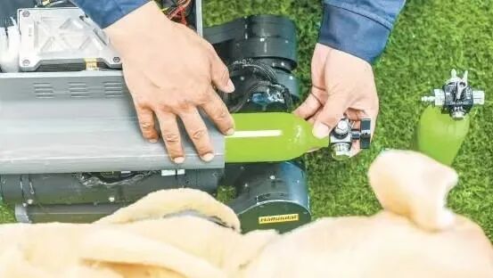“这狗子能火,全靠氢瓶在背后撑腰!”研发团队成员笑着为我们揭秘。原来,2楼的北京氢冉新能源科技有限公司掌握着固态储氢技术这一“法宝”,而6楼的北京海厚泰智能科技有限公司则在机器人设计领域深耕细作。两家公司同处一个园区,在一次交流中一拍即合,开启了协同创新。