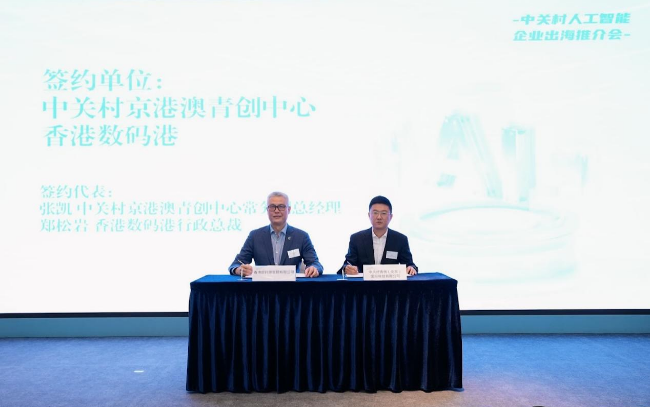 在北京市科委、中关村管委会的推动下,中关村京港澳青年创新创业中心分别与香港数码港、香港生产力促进局签署“中关村人工智能企业出海服务站(港澳)”合作协议,并举行中关村人工智能企业出海服务站(港澳)揭牌仪式,这标志着中关村人工智能企业出海服务体系在香港正式落地,为后续企业对接海外资源、拓展国际业务搭建起高效便捷的桥梁。