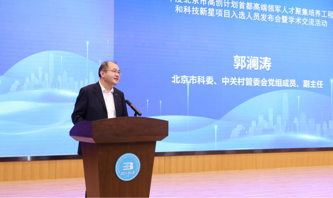 2月4日,2025年度北京市高创计划首都高端领军人才聚集培养工程(以下简称“高聚工程”)项目和科技新星项目入选人员发布会暨学术交流活动在北京工业大学举办。市科委、中关村管委会党组成员、副主任郭澜涛,北京工业大学党委副书记张辉以及市人才工作局相关负责同志出席活动。