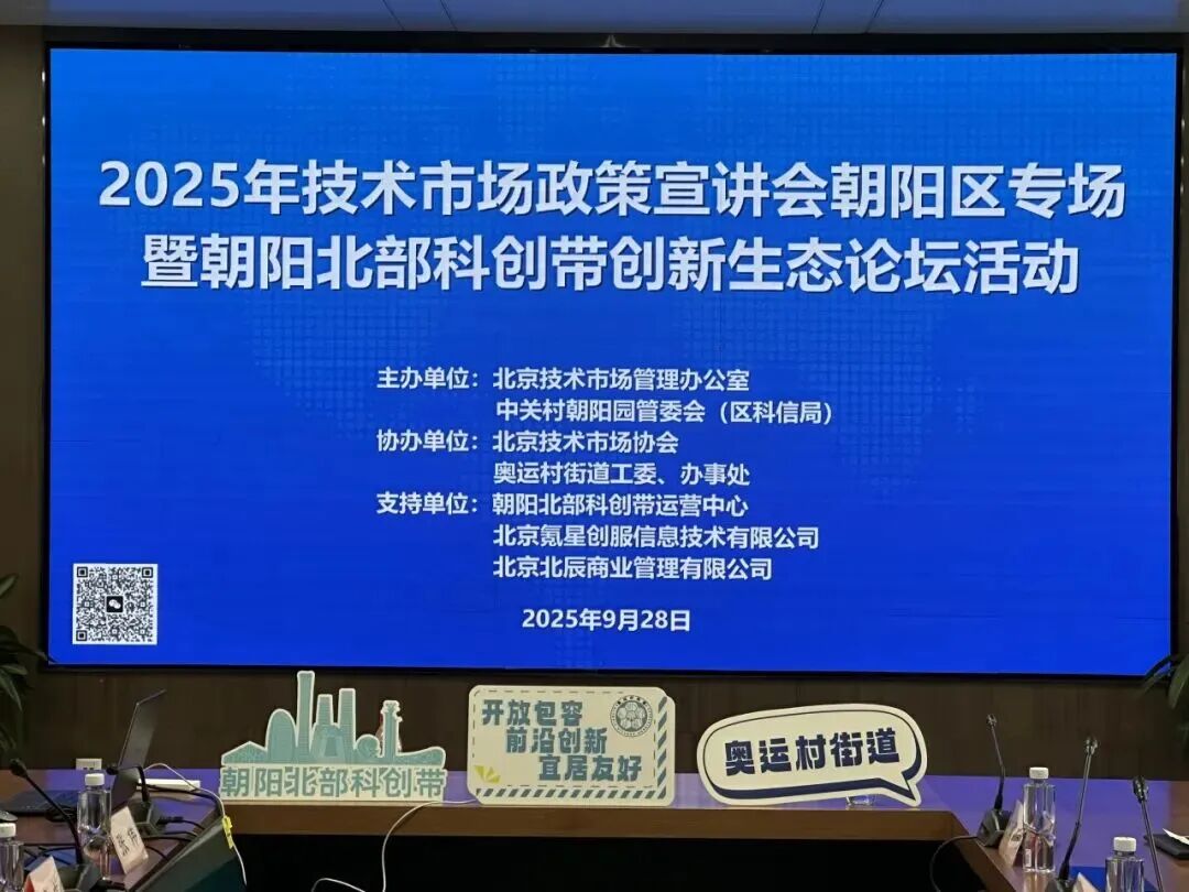 活动由北京技术市场管理办公室、中关村朝阳园管委会(区科信局)主办,北京技术市场协会,奥运村街道工委、办事处协办,朝阳北部科创带运营中心、北京氪星创服、北辰商管支持。