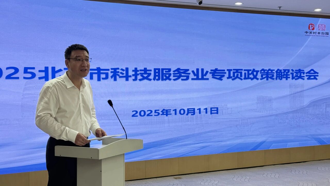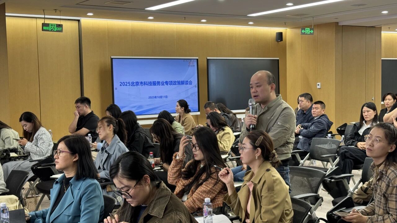 10月11日,丰台园管委会在丰台创新中心举办2025北京市科技服务业专项政策解读会,丰台园党工委副书记、管委会主任张俊峰、北京科技创新促进中心主任褚潇炜、科技服务业部部长付文均、副部长李文姬、央企联络部副部长娄博杰到场出席会议,区科技和信息化局、区市场监管局、丰台园管委会相关部门负责同志以及华电科工股份、中国质量认证中心、天启鸿源、英诺特、戴纳科技、中腾微网等60余家企业有关负责同志参加了会议。