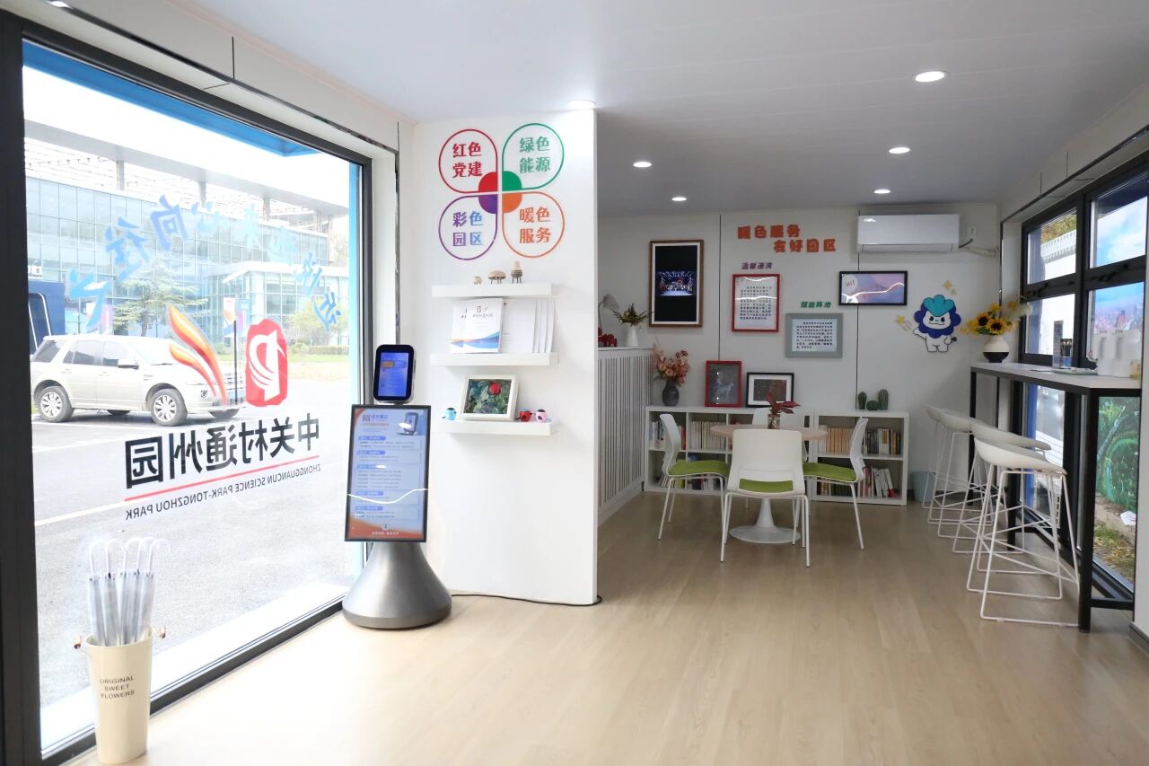 随后,一行人前往园区党群驿站,实地探访了这座集“红色党建、绿色能源、彩色园区、暖色服务”于一体的“多彩能量小屋”,既展现了低碳环保的发展理念,又搭建了党建引领下的企业服务平台。
