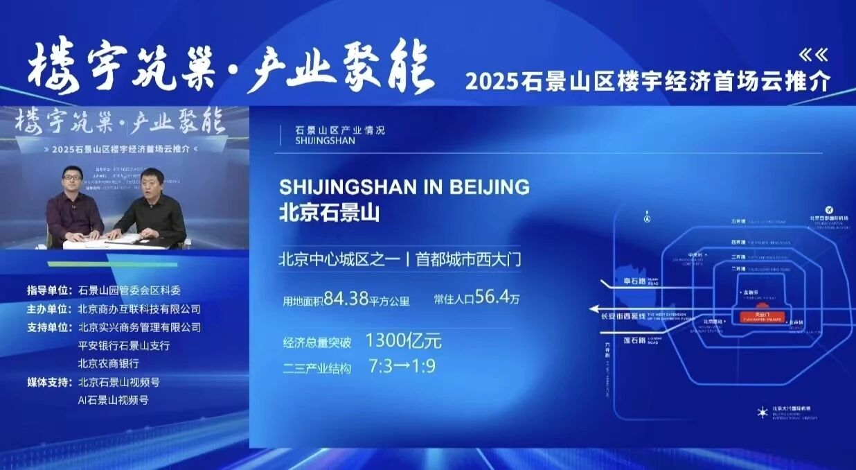 11月19日,2025石景山区楼宇经济首场云推介活动成功在线上举办。本次活动由石景山园管委会区科委指导,北京商办互联科技有限公司主办,采用线上“云推介”模式,以“楼宇筑巢·产业聚能”为主题,聚焦新质生产力与楼宇经济深度融合,全方位呈现石景山区优质的产业政策、多元的空间载体与完善的金融服务生态。通过北京石景山、AI石景山、商办互联视频号平台同步直播,累计观看人数超2万,直观呈现了石景山区优越的营商环境和丰富的产业空间,为楼宇运营、企业选址打造了一场高规格、高效率、高触达的线上推介活动。